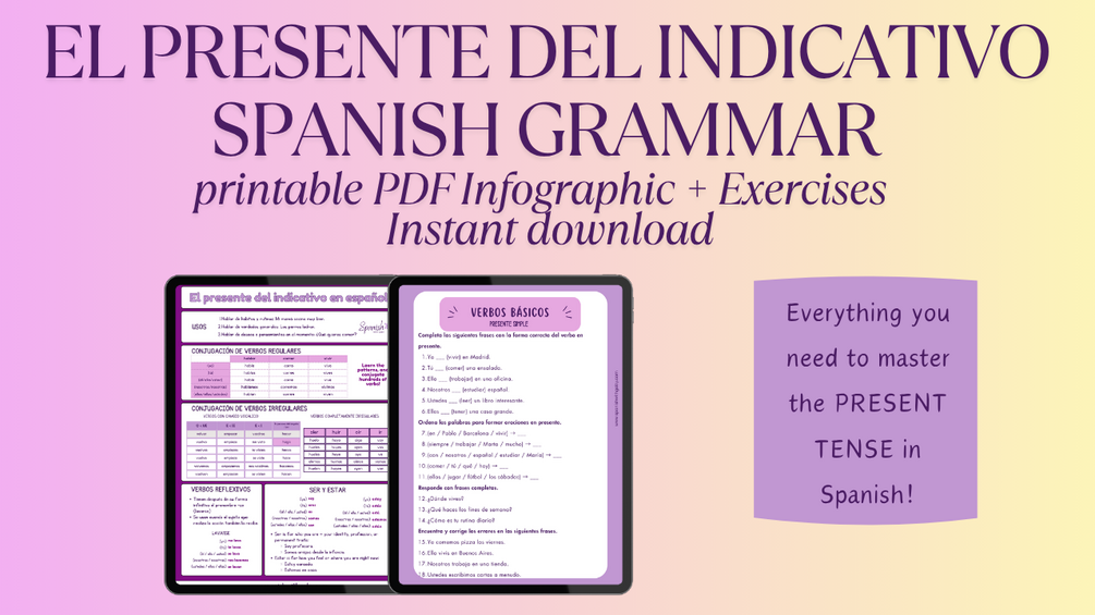 Master the Spanish present tense (presente del indicativo) with this clear and beautiful printable PDF.