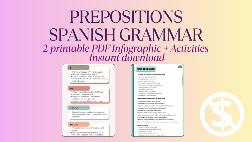 FREE Resource: Prepositions A, DE, DESDE, HACIA – Grammar Poster + Practice