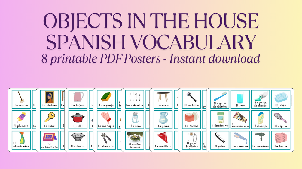 10 high-quality, print-ready posters with vocabulary of objects of the house