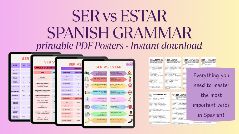 Finally understand when to use SER and ESTAR with this clear, visual grammar poster set, plus practice exercises to reinforce your learning.